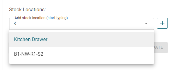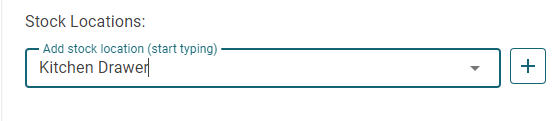 After clicking 'CREATE', start typing one of the stock locations into the stock location search field. In our example we will type "Ki" for the begining of "Kitchen Drawer" and then select the "Kitchen Drawer" location.
