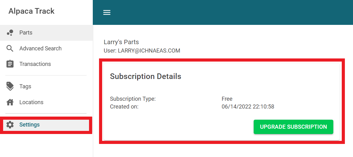 In the 'Settings' page near the top is a section called 'Subscription Details'. This section will give you details on your current subscription. If you are on the Free subscription you can click 'UPGRADE SUBSCRIPTION' to upgrade to one of the paid options. If you are on the paid subscription you will have the option to cancel your subscription.
